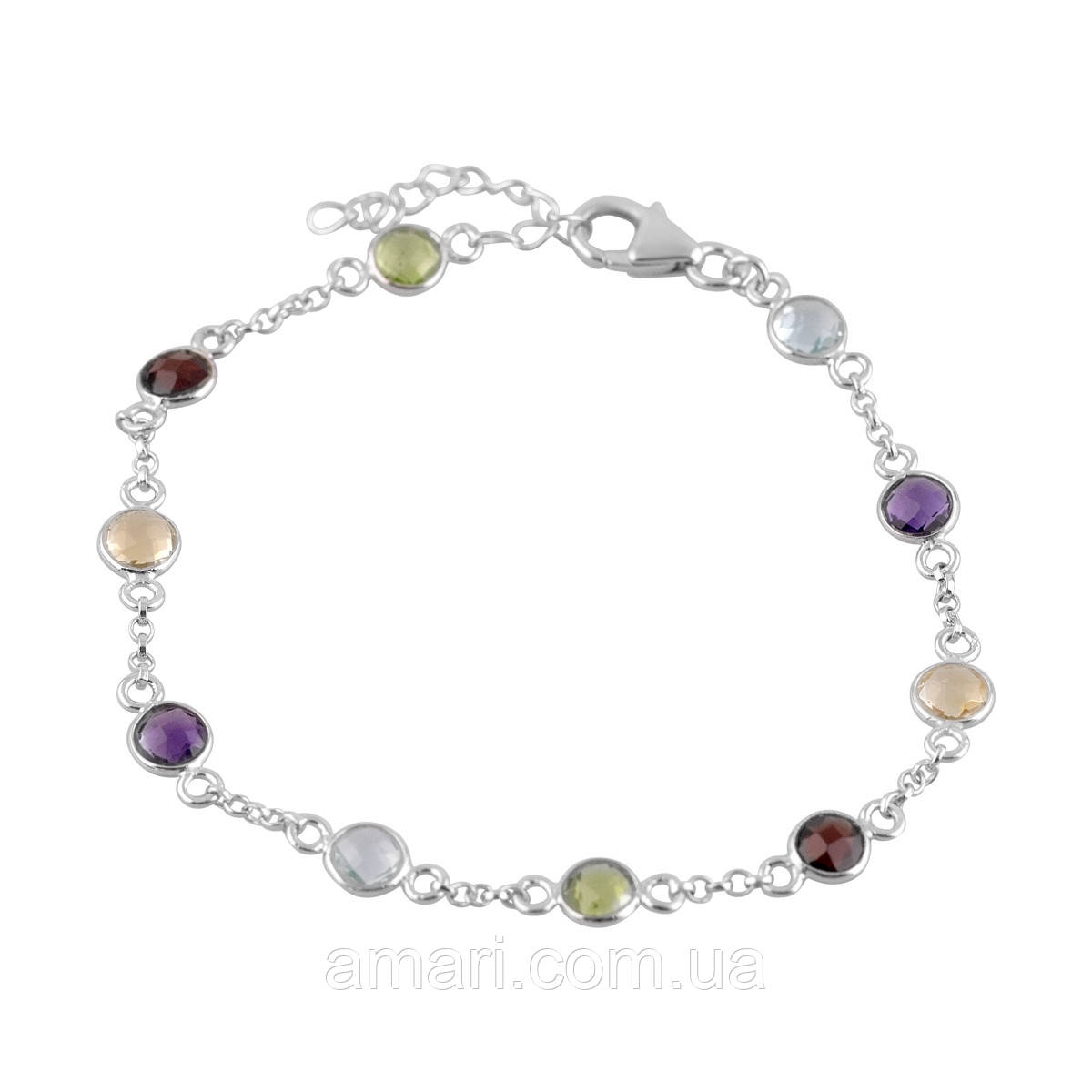 Срібний браслет Komilfo з натуральним аметистом 4.933ct, топазом, цитрином nano, гранатом, вага виробу 3,41